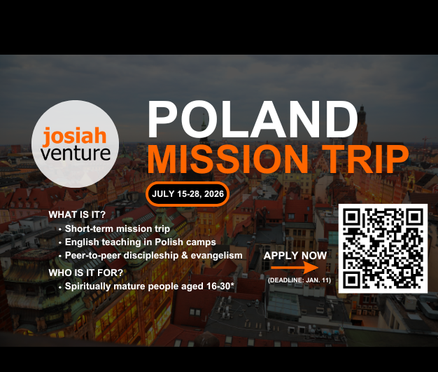 If you are between the ages of 16 and 30, join Cedar Creek’s 2‑week mission trip to Poland in July 2026! Share life, your English language skills, and your faith with Polish youth. Approx. cost $3,500 with fundraising support.